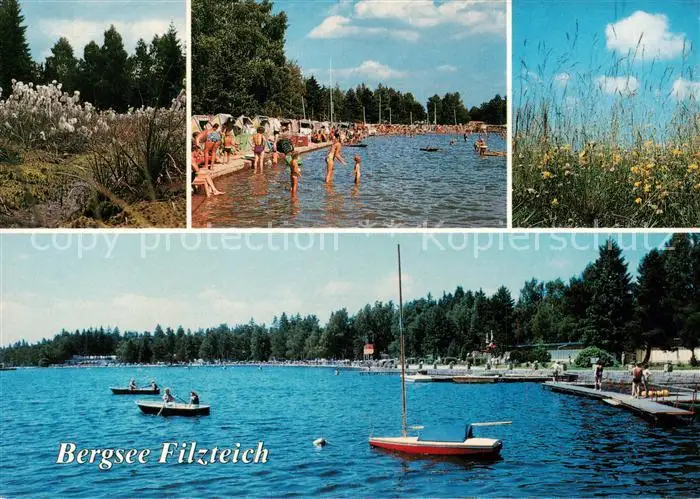 AK / Ansichtskarte Schneeberg_Erzgebirge Bergsee Filzteich Badestrand Bootsanleger Schneeberg Erzgebirge