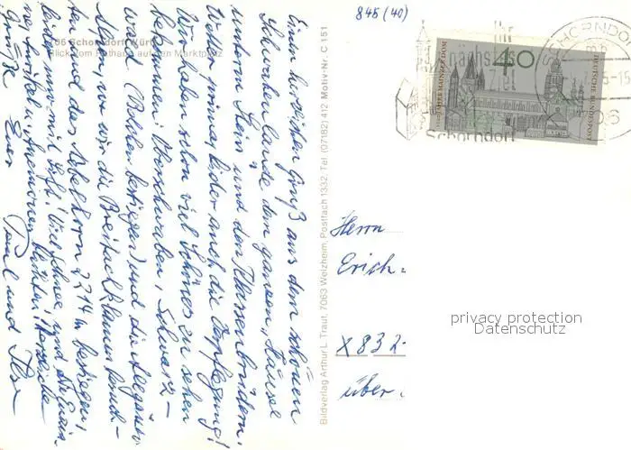 Schorndorf Wuerttemberg Kategorie Alte Ansichtskarten Postkarten bx55777 Schorndorf_Wuerttemberg Rathaus Marktplatz Schorndorf Wuerttemberg postalisch gelaufen nach 1965 Erhaltung siehe scans [NatalD47]