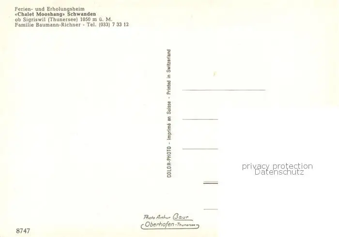 Schwanden_BE Ferien und Erholungsheim Chalet Mooshang Schwanden BE postalisch nicht gelaufen nach 1965 Erhaltung siehe scans [WerneD78] WernPID7