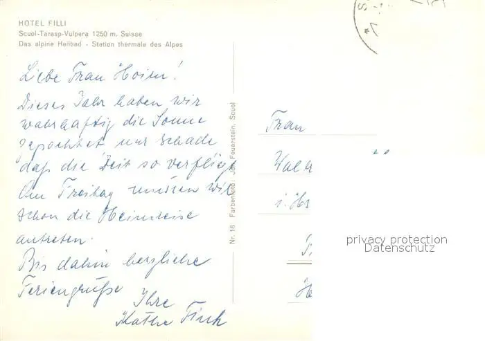 Scuol_Tarasp_Vulpera Hotel Filli Aussenansicht Scuol_Tarasp_Vulpera postalisch gelaufen nach 1965 Erhaltung siehe scans [LiesaD40] LiesID40