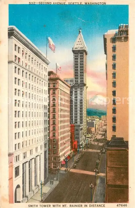 AK / Ansichtskarte Seattle Second Avenue Smith Tower with Mt Rainier