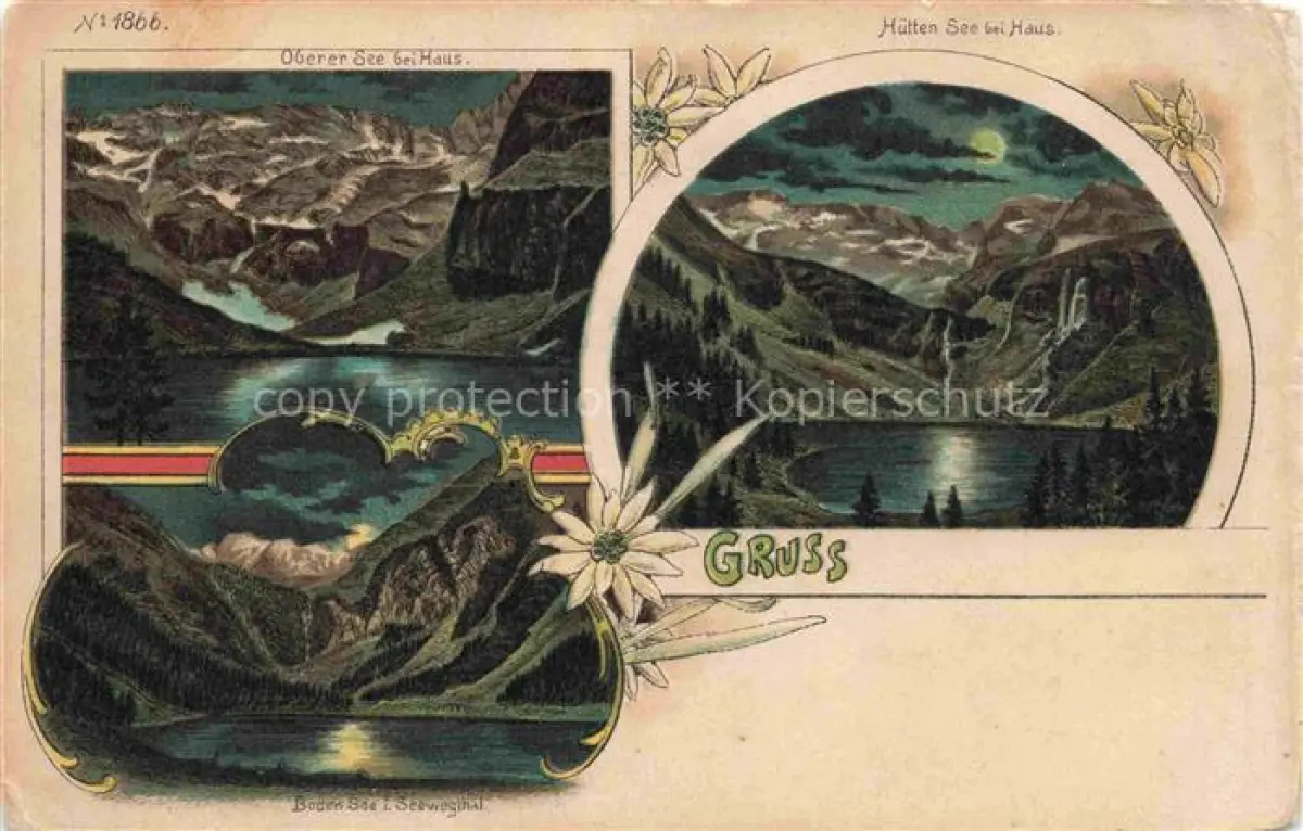 14102262 Seewegthal Seewigtal Groebming Steiermark AT Panorama Oberer See Huettensee bei Haus Bodensee Alpenpanorama im Mondschein postalisch nicht gelaufen Erhaltung siehe scans [FriedD77] Frie Katcode 11390222061213