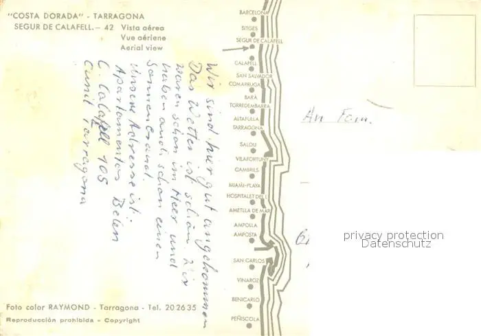 Segur_de_Calafell Vista aerea Segur_de_Calafell postalisch gelaufen nach 1965 Erhaltung siehe scans [FriedD77] Frierer