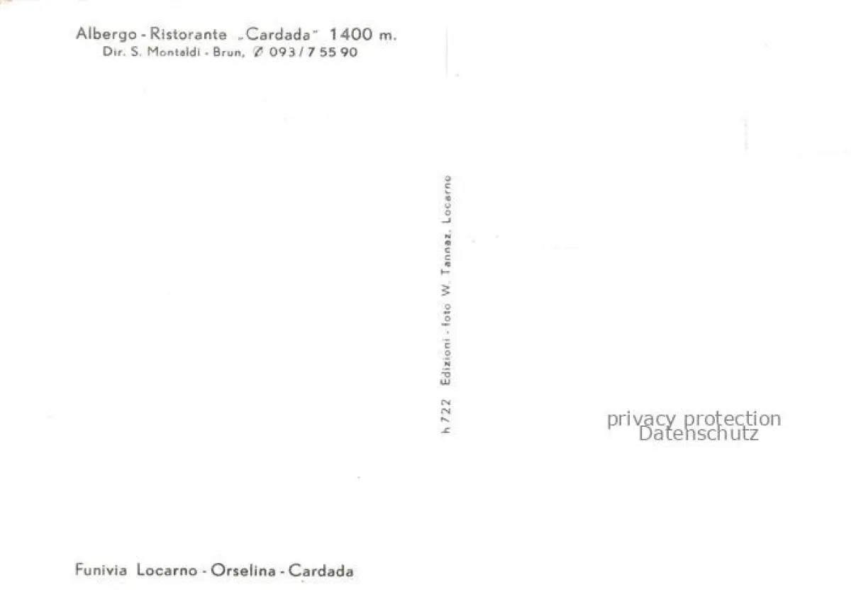 Seilbahn Cable-Car Telepherique Albergo Orselina Cardada Funivia Locarno postalisch nicht gelaufen Erhaltung siehe scans [SanaeD93] Sana Katcode 22040000000400