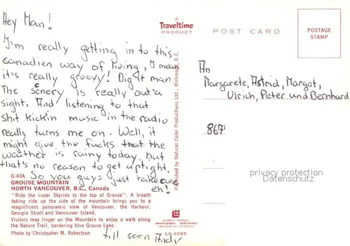 Seilbahn Grouse Mountain North Vancouver B.C. Canada Seilbahn postalisch nicht gelaufen nach 1965 Erhaltung siehe scans [PaolaD17] PaolPID1