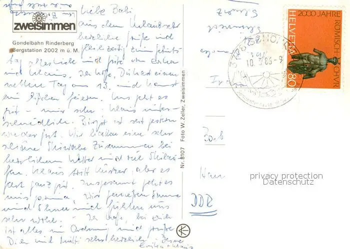 Seilbahn Rinderberg Zweisimmen Seilbahn postalisch gelaufen 1986 Erhaltung siehe scans [PaolaD17] PaolPID1