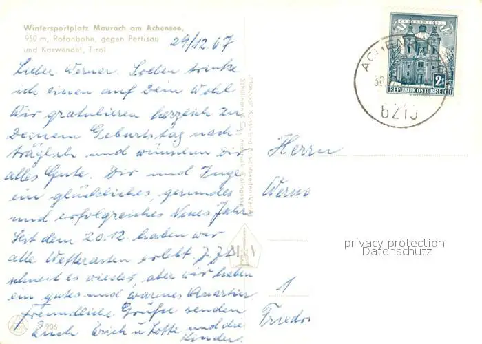 Seilbahn Rofanbahn Maurach am Achensee Pertisau Karwendel Seilbahn postalisch gelaufen 1967 Erhaltung siehe scans [PaolaD17] PaolPID1
