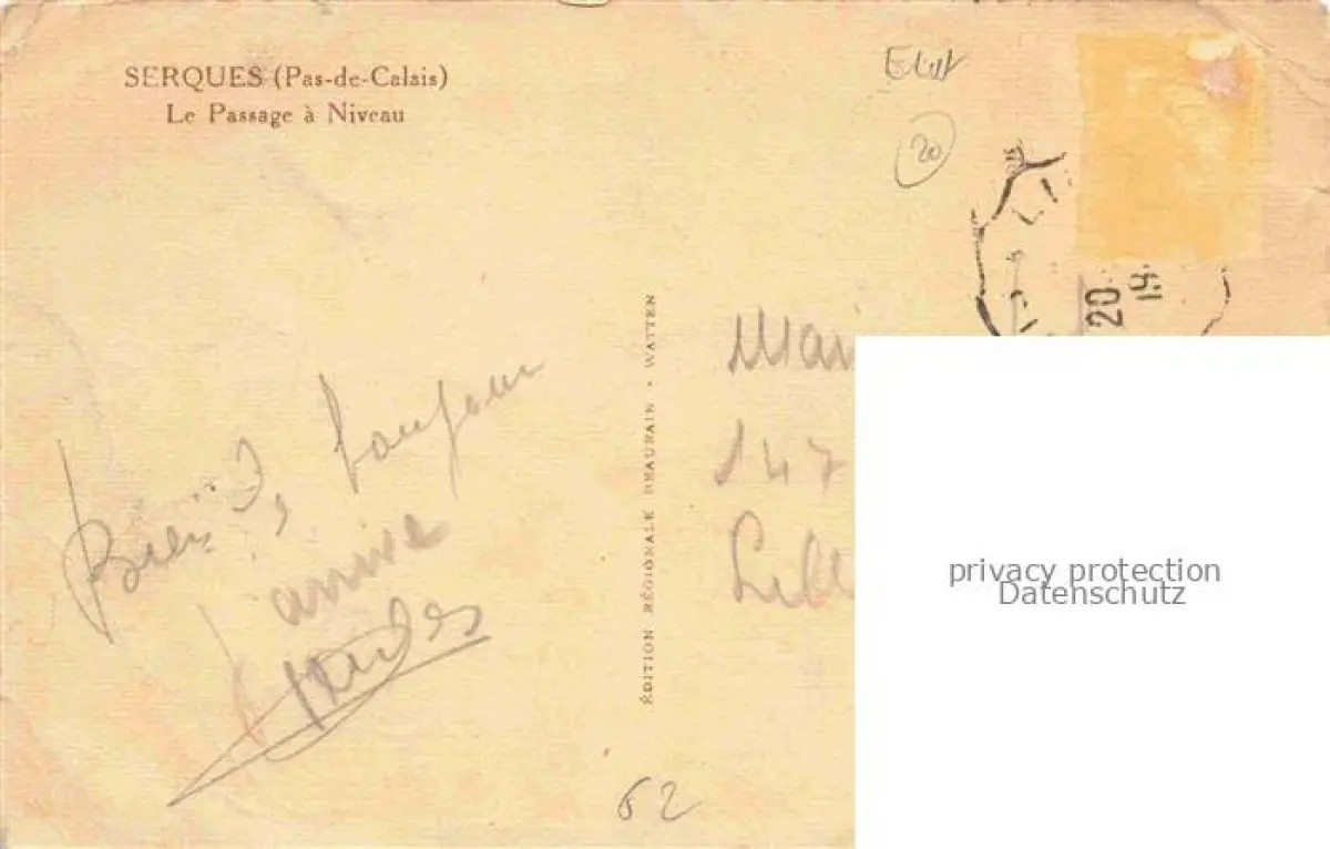 14096259 Serques Saint-Omer 62 Pas-de-Calais Le Passage à Niveau postalisch gelaufen Erhaltung siehe scans [FriedD77] carte postale Frie Katcode 11170062562792