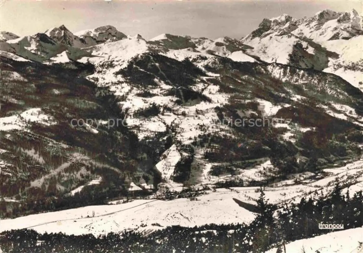 14079779 Serre-Chevalier 2483m Briancon 05 Hautes-Alpes Vue panoramique de la station à droite le Pelvoux Alpes postalisch gelaufen Erhaltung siehe scans [FriedD77] carte postale Frie Katcode 11170005105079