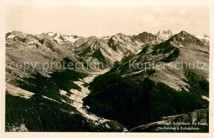 AK / Ansichtskarte Sertigtal_GR Aelplihorn Piz Kesch Hochdukan und Kuhalphorn