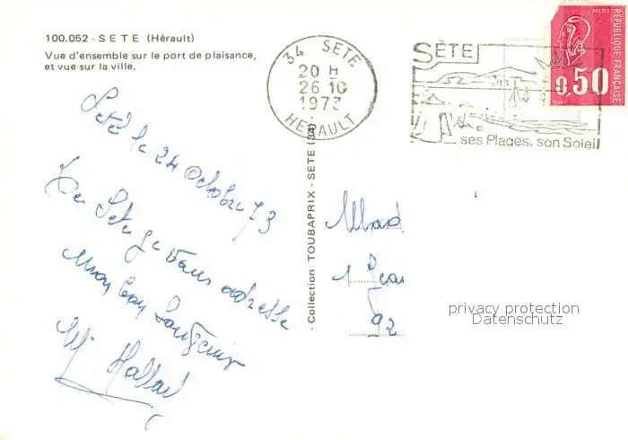 Sete_Cette Vue d’ensemble sur le port de plaisance et vue sur la ville postalisch gelaufen 1973 Erhaltung siehe scans [WerneD78] WernPID7