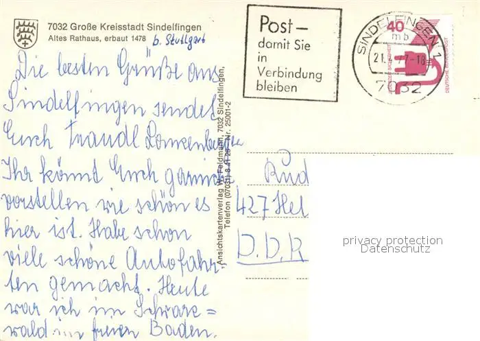 Sindelfingen Altes Rathaus Sindelfingen postalisch gelaufen 1977 Erhaltung siehe scans [WerneD78] WernPID7