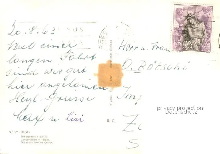 Sitges Embarcadero Iglesia Sitges postalisch gelaufen nach 1965 Erhaltung siehe scans [NatalD47] NataID47