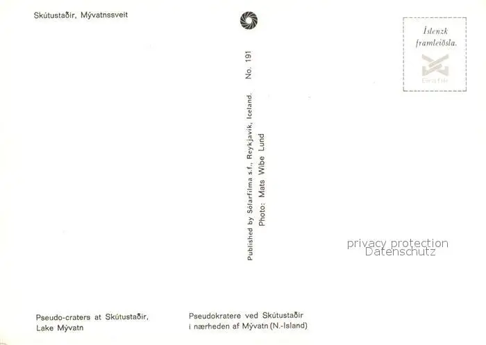 Skutustaoir Myvatnssveit Pseudo craters Lake Myvatn aerial view postalisch nicht gelaufen nach 1965 Erhaltung siehe scans [FriedD77] Frierer