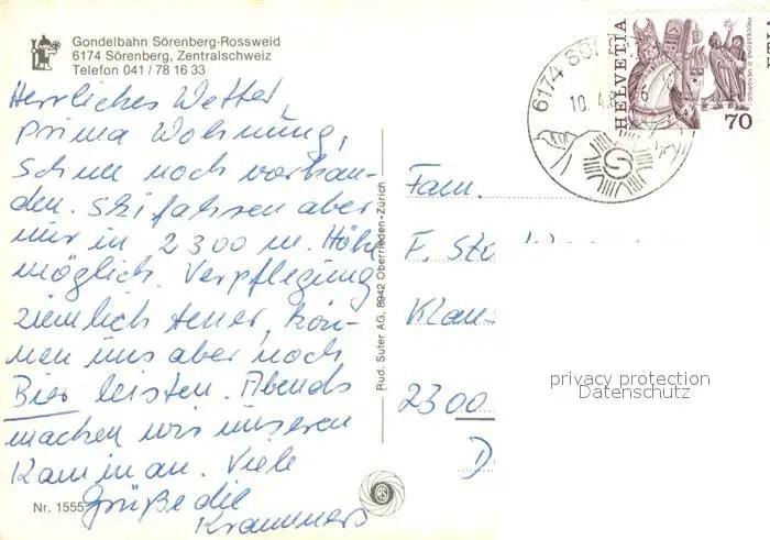 Soerenberg_LU Gondelbahn Rossweid Winter Soerenberg LU postalisch gelaufen nach 1965 Erhaltung siehe scans [KathaD81] Kathoren