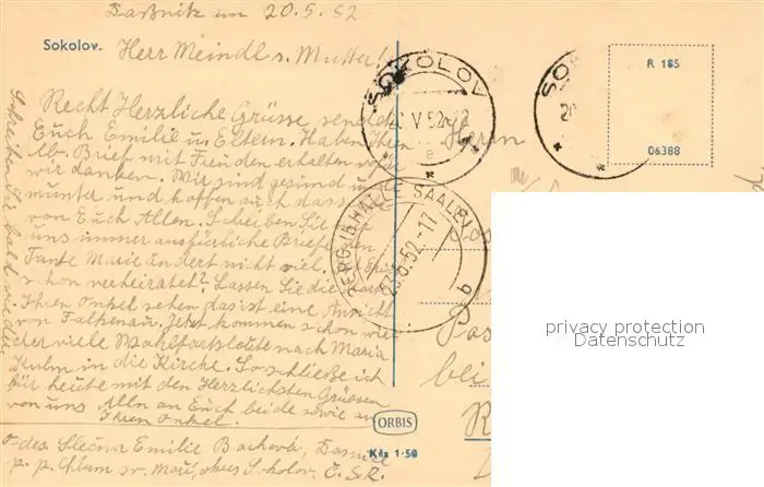 Sokolov Motiv im Zentrum Kirche Sokolov postalisch gelaufen 1952 Erhaltung siehe scans [FriedD77] Frierer