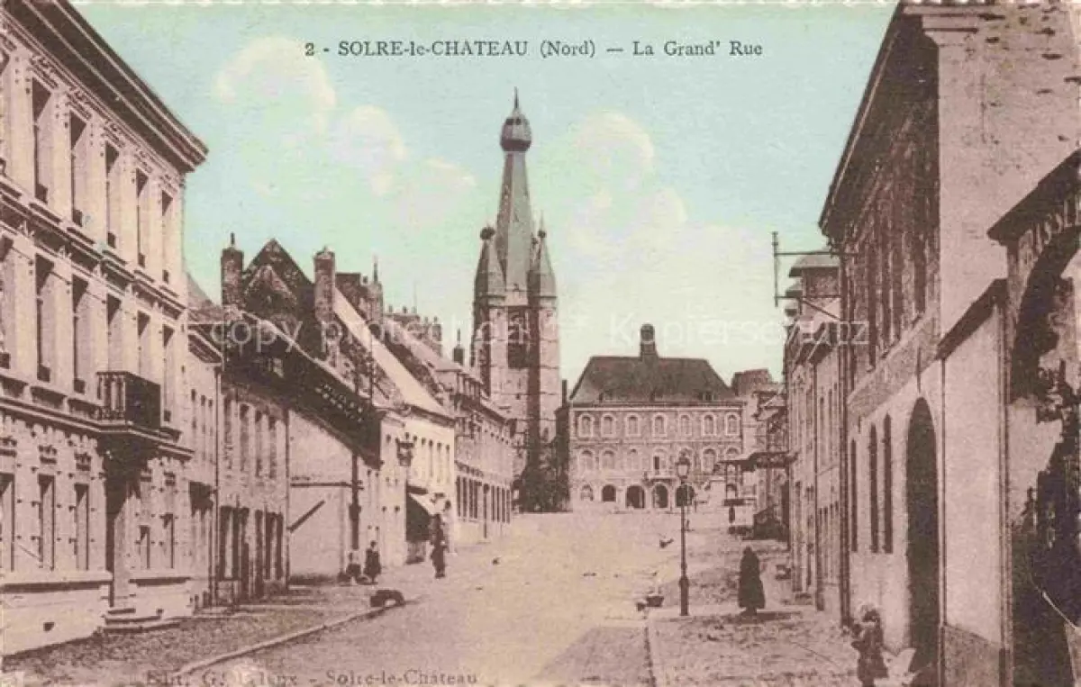 alte Postkarte Solre-le-Chateau Avesnes-sur-Helpe 59 Nord La Grande Rue Eglise postalisch gelaufen Erhaltung siehe scans [FriedD77]