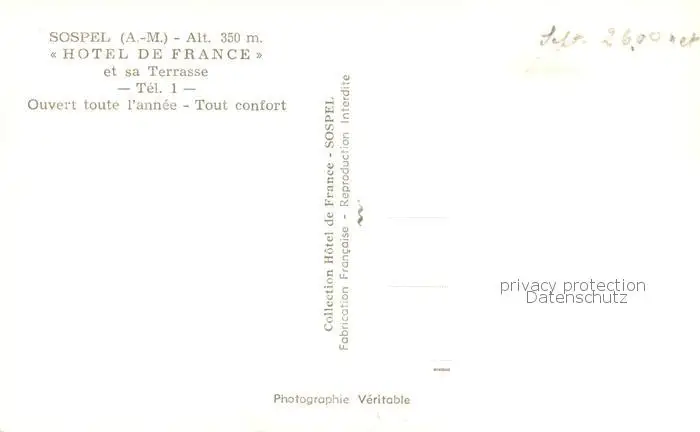 Sospel Hotel de France et sa Terrasse Sospel postalisch nicht gelaufen 1921-1965 Erhaltung siehe scans [WerneD78] WernPID7