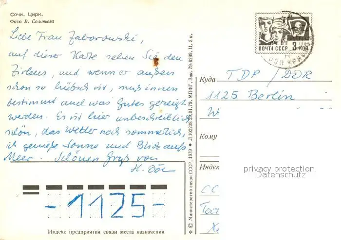 Sotschi_Sochi Zirkus postalisch gelaufen 1966 Erhaltung siehe scans [FriedD77] Frierer