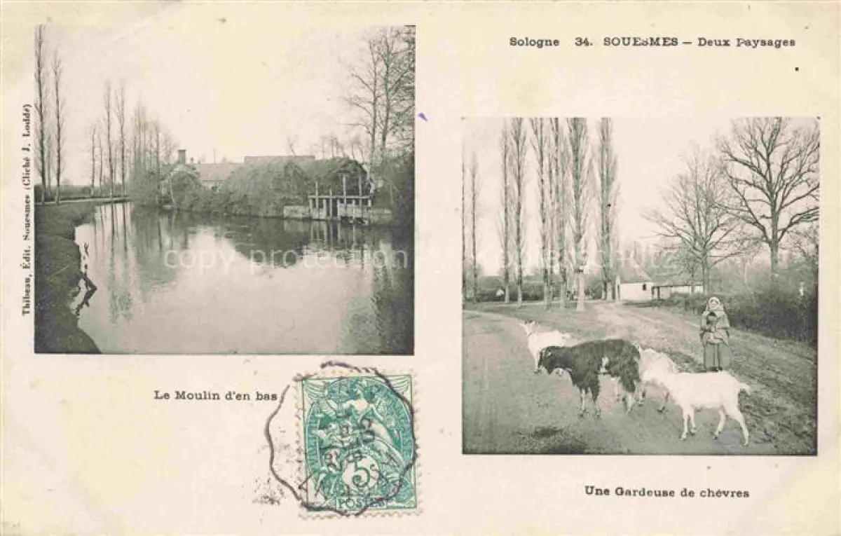 AK / Ansichtskarte Souesmes 41 Loir-et-Cher Deux Paysages Le Moulin d'en bas Une Gardeuse de chevres
