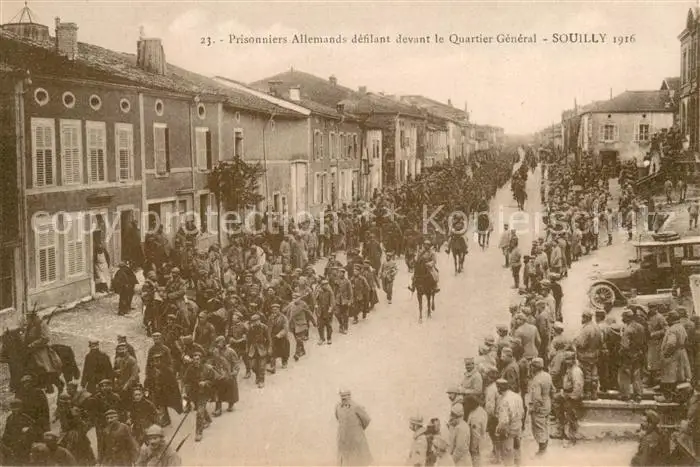 Souilly_55 Prisonniers Allemands devant le Quartier Général postalisch nicht gelaufen bis 1920 Erhaltung siehe scans [FriedD77] Frierer