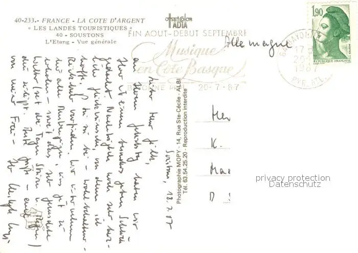 Soustons Etang Vue generale aerienne Soustons postalisch gelaufen 1987 Erhaltung siehe scans [WerneD78] WernPID7