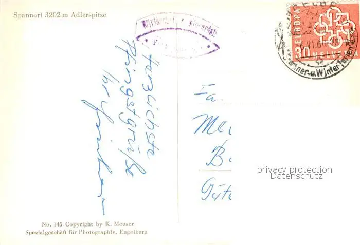 Spannort_3202m_Engelberg_OW mit Adlerspitze postalisch gelaufen 1960 Erhaltung siehe scans [FriedD77] Frierer