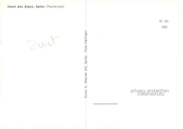 Spiez_Thunersee_BE Hotel des Alpes Spiez_Thunersee_BE postalisch nicht gelaufen nach 1965 Erhaltung siehe scans [LiesaD40] LiesID40