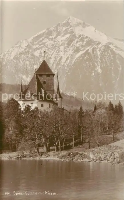AK / Ansichtskarte Spiez_Thunersee_BE Schloss mit Niesen Spiez_Thunersee_BE