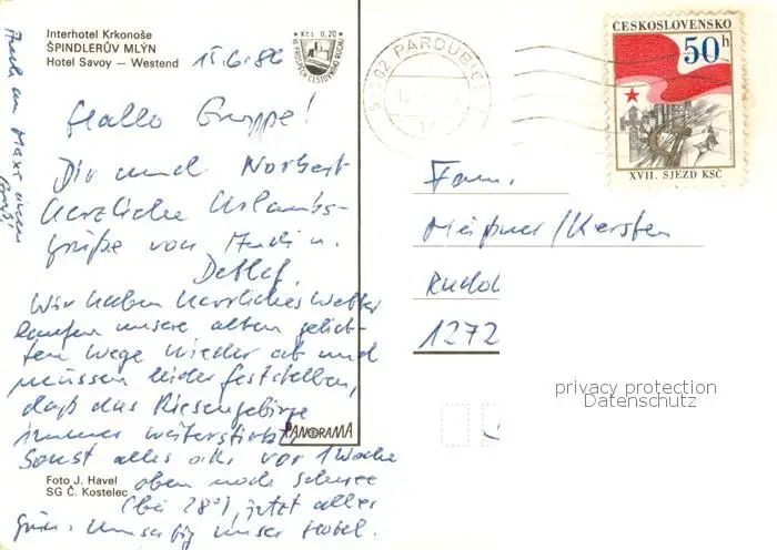 Spindleruv_Mlyn_Spindelmuehle_Riesengebirge_CZ Interhotel Krkonose Hotel Savoy Westend postalisch gelaufen 1986 Erhaltung siehe scans [WerneD78] WernPID7