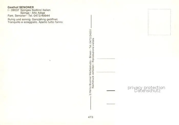 Spinges Gasthof Senoner Spinges postalisch nicht gelaufen nach 1965 Erhaltung siehe scans [KathaD81] Kathoren