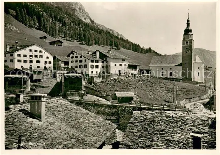 Spluegen_GR Dorfansicht mit Kirche Spluegen_GR postalisch nicht gelaufen 1921-1965 Erhaltung siehe scans [FriedD77] Frierer