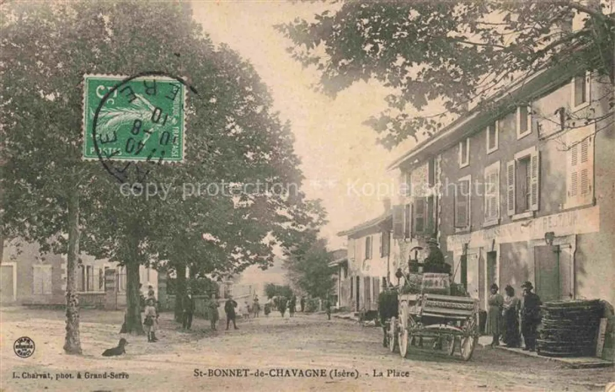 carte postale St-Bonnet-de-Chavagne GRENOBLE 38 Isere La Place postalisch gelaufen Erhaltung siehe scans [FriedD77]