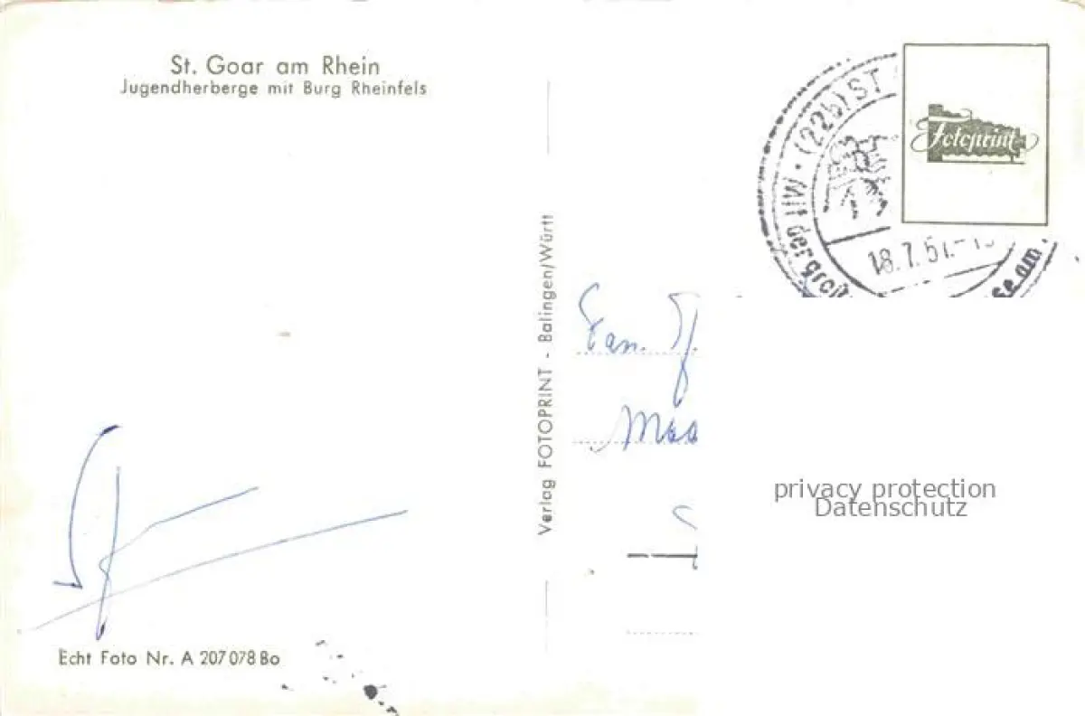 alte Postkarte St Goar Rhein Jugendherberge mit Burg Rheinfels postalisch gelaufen Erhaltung siehe scans [FriedD77]
