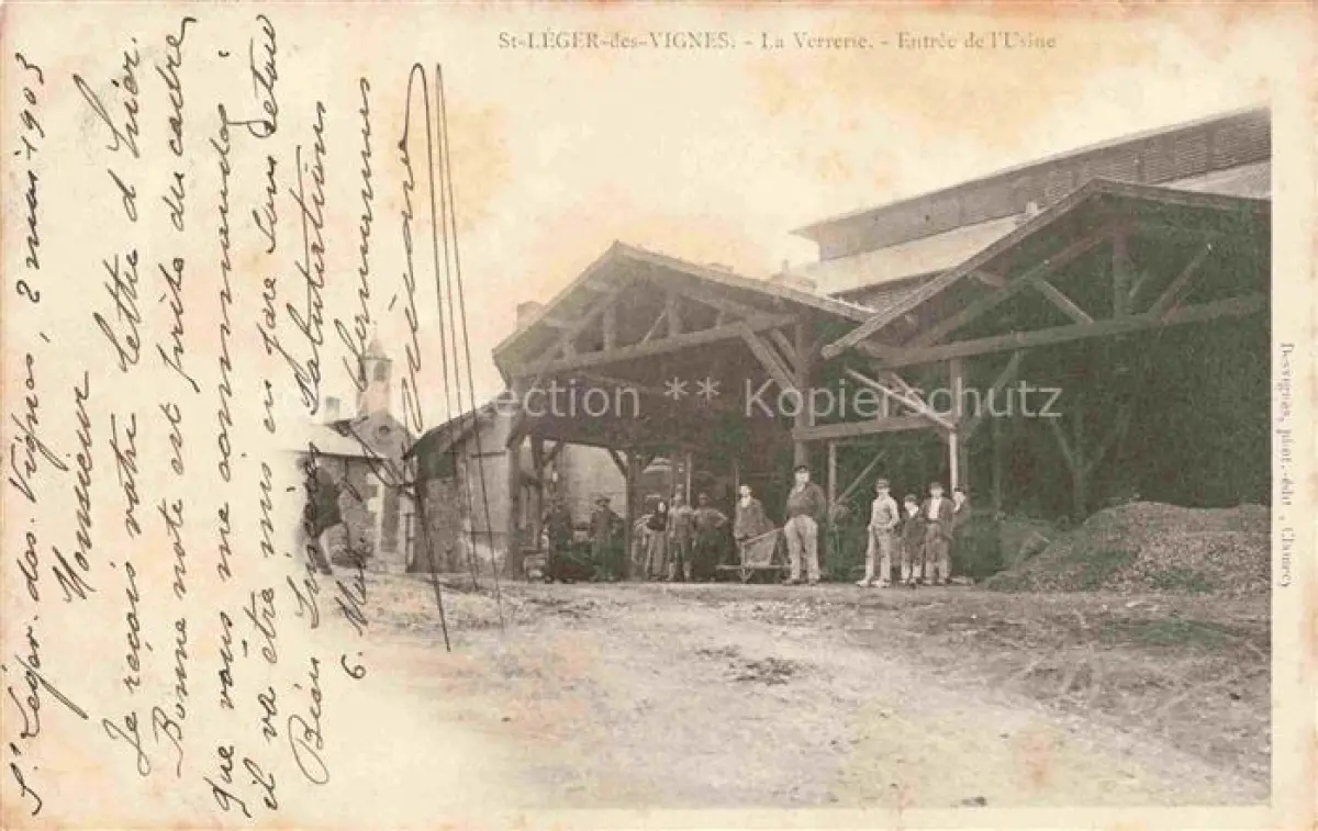 14102508 St-Leger-des-Vignes La Verrerie entrée de l'usine postalisch gelaufen Erhaltung siehe scans [FriedD77] alte Postkarte Frie Katcode 11170058358250