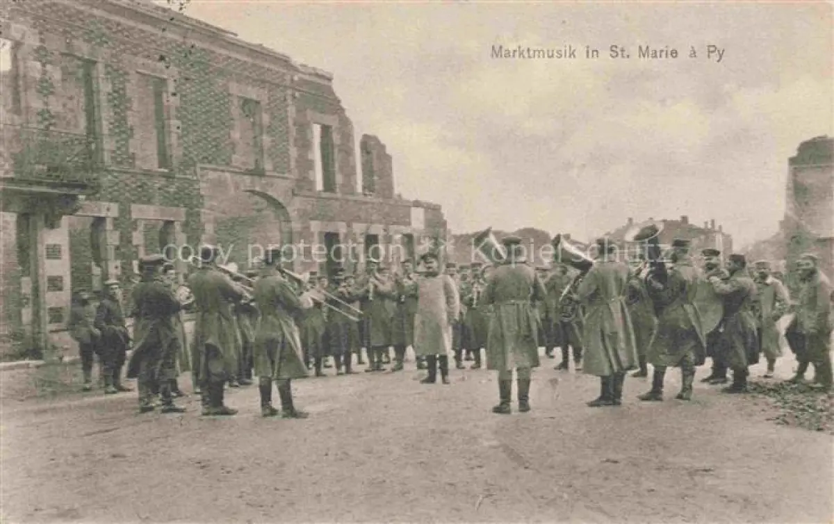 14091955 St-Marie-a-Py Sainte-Marie-a-Py Suippes 51 Marne Marktmusik postalisch gelaufen Feldpostexpedition (Stempel) Erhaltung siehe scans [FriedD77] Feldpostexpedition (Stempel) carte postale Frie Katcode 11170051151559