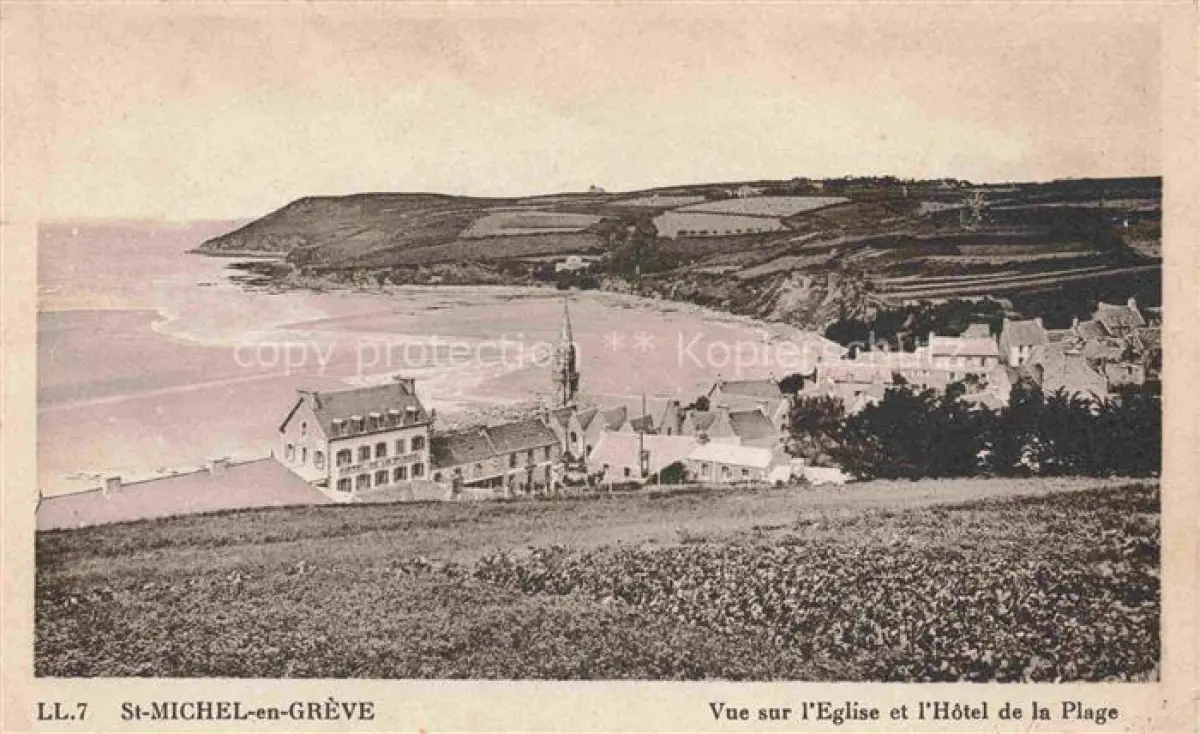 14116530 St-Michel-en-Greve Lannion 22 Cotes-d Armor Vue sur l Eglise Hotel de la Plage postalisch gelaufen Erhaltung siehe scans [IrynaD87] carte postale Iryn Katcode 11170022322319