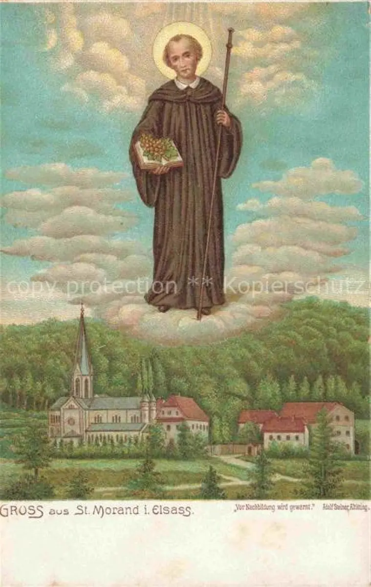 AK / Ansichtskarte St-Morand Saint-Morand Rammersmatt Thann 68 Haut-Rhin Kloster Kirche Heiligenfigur Kuenstlerkarte