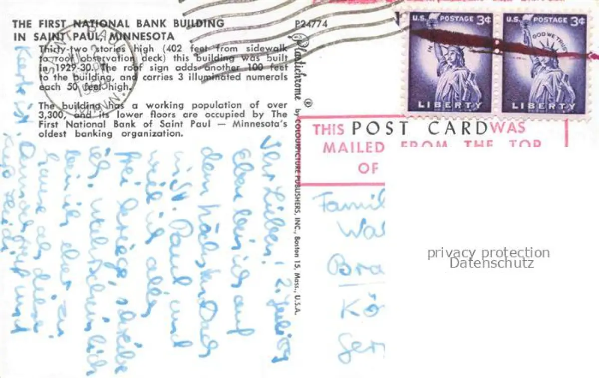 old postcard St Paul Minnesota USA The First National Bank Building postalisch gelaufen Erhaltung siehe scans [WerneD78]