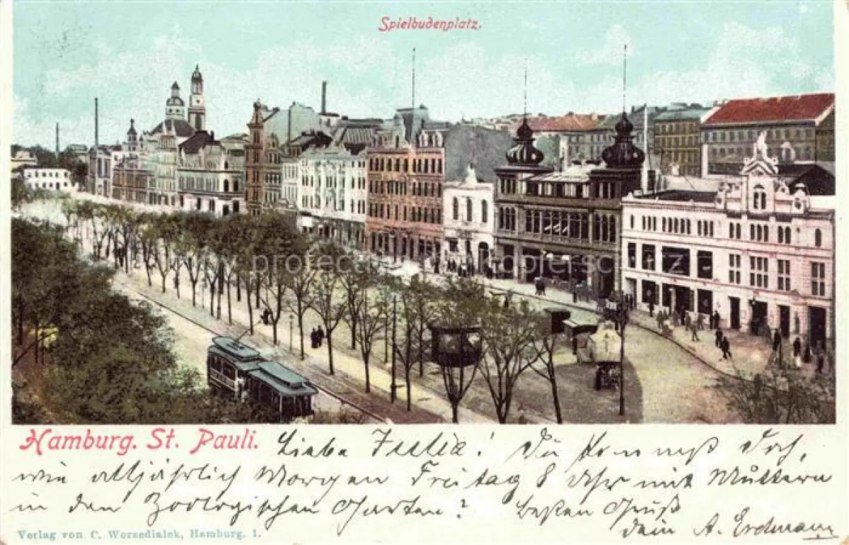 alte Postkarte St Pauli Hamburg Spielbudenplatz postalisch gelaufen Erhaltung siehe scans [FriedD77]