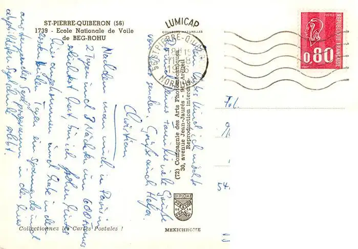 St-Pierre-Quiberon__56_Morbihan Ecole Nationale de Voile de Beg-Rohu Vue aerienne postalisch gelaufen 1976 Erhaltung siehe scans [WerneD78] WernPID7