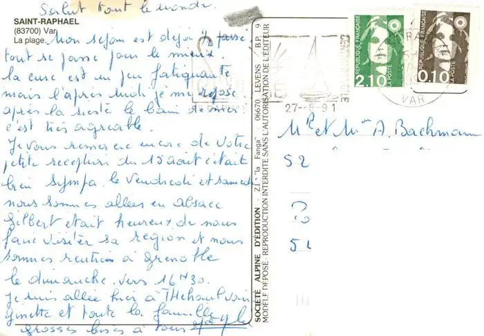 St-Raphael_83_Var La plage postalisch gelaufen 1991 Erhaltung siehe scans [FriedD77] Frierer
