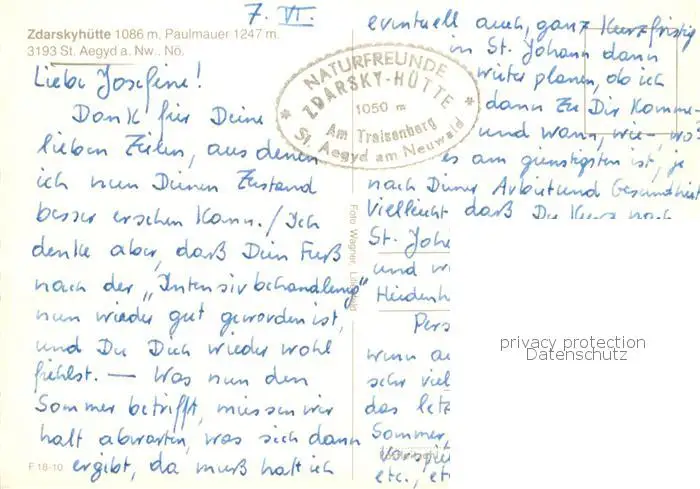 St_Aegyd_Neuwalde_AT Zdarskyhuette mit Paulmauer Gaststube Panorama postalisch nicht gelaufen nach 1965 Erhaltung siehe scans [FriedD77] Frierer