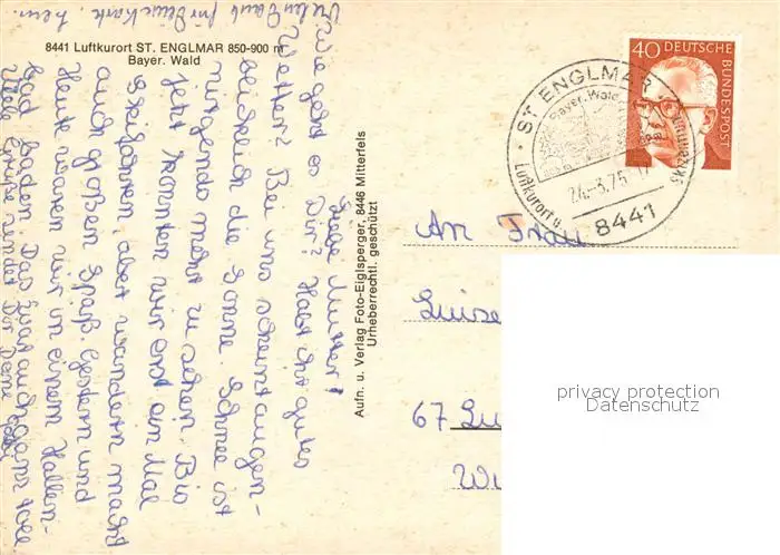 St_Englmar Kategorie Alte Ansichtskarten Postkarten bx54673 St_Englmar St_Englmar postalisch gelaufen 1975 Erhaltung siehe scans [NatalD47]
