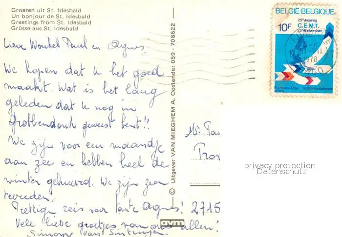 St_Idesbald Teilansichten Stranduhr Hotels Strand Segeln St_Idesbald postalisch gelaufen 1978 Erhaltung siehe scans [FriedD77] Frierer
