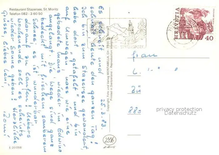 St_Moritz_GR Restaurant Stazersee St_Moritz_GR postalisch gelaufen 1983 Erhaltung siehe scans [WerneD78] WernPID7