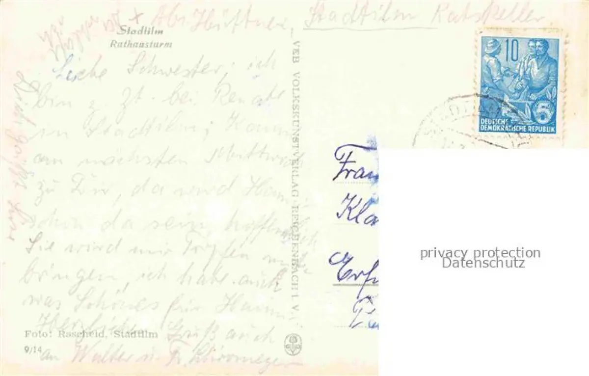 alte Postkarte Stadtilm Rathausturm postalisch gelaufen Erhaltung siehe scans [WerneD78]