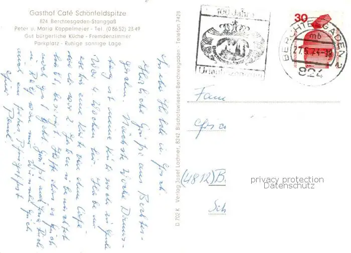Stanggass_Berchtesgaden Gasthof Cafe Schoenfeldspitze Freiterrasse Stanggass Berchtesgaden postalisch gelaufen 1974 Erhaltung siehe scans [WerneD78] WernPID7