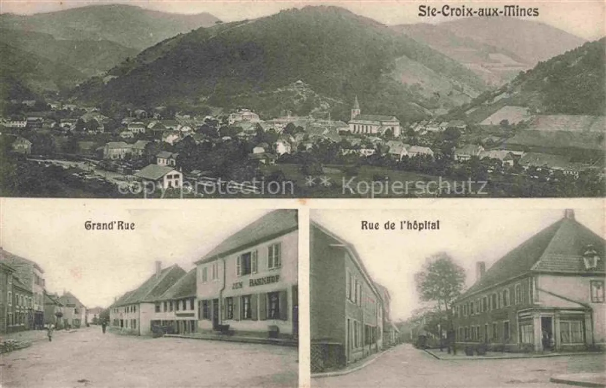 alte Postkarte Ste-Croix-aux-Mines 88 Vosges Vue panoramique Grande Rue Rue de l'Hôpital postalisch gelaufen Erhaltung siehe scans [FriedD77]