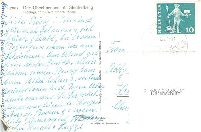 Stechelberg Oberhornsee mit Tschingelhorn Wetterhorn Kanzel Stechelberg postalisch gelaufen 1965 Erhaltung siehe scans [WerneD78] WernPID7